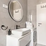 1-slaapkamer Studio Apartment Home heeft een zitruimte en is compleet met geluiddichte ramen en het comfort van airconditioning. Gasten hebben een bureau, samen met verschillende media-opties, waaronder een flatscreen TV met satellietzenders en TV met meerdere kanalen. Dit appartement heeft 1 slaapkamer met donzen/veren kussens. De accommodatie bevat 1 badkamer, die een apart toilet en een douche biedt. Bovendien vindt u een droger en handdoeken in de badkamer.